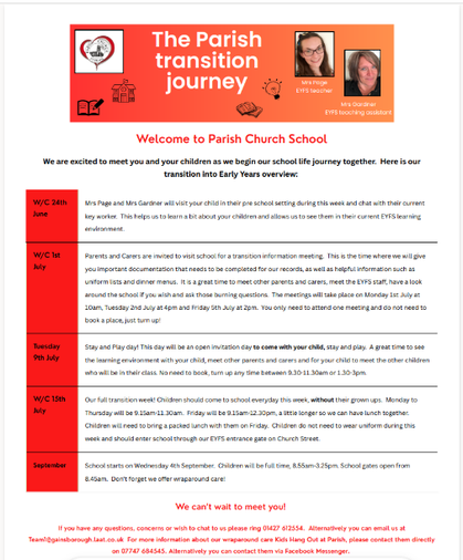 All admissions are managed by Lincolnshire County Council, but we are happy to help answer any questions.  We work hard to ensure a smooth transition for both children and their families as we know what an exciting but worrying time starting a new school can be.  Please see the poster which shows how we supported our families last year.